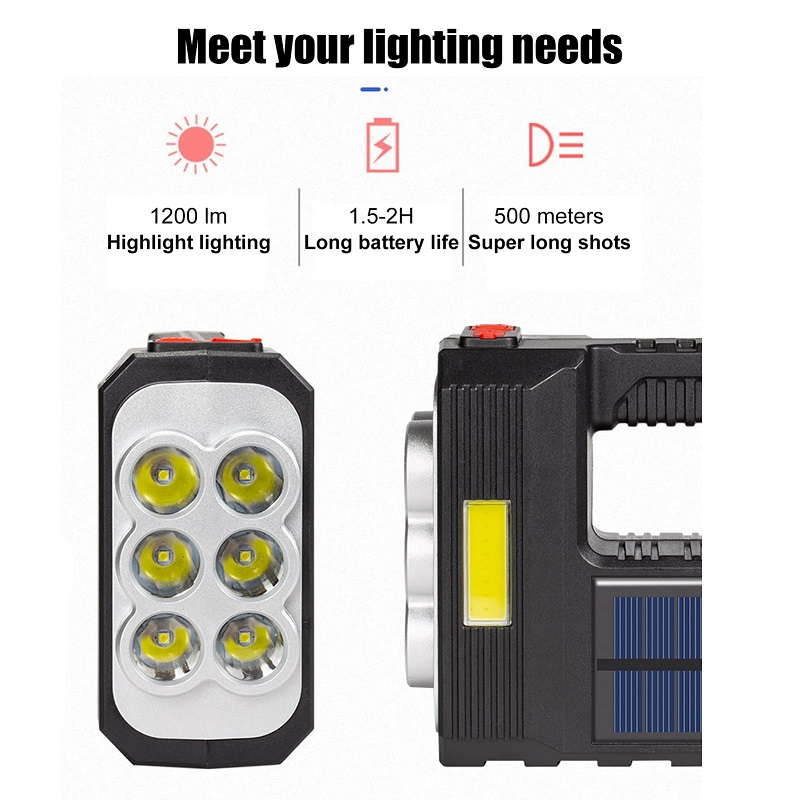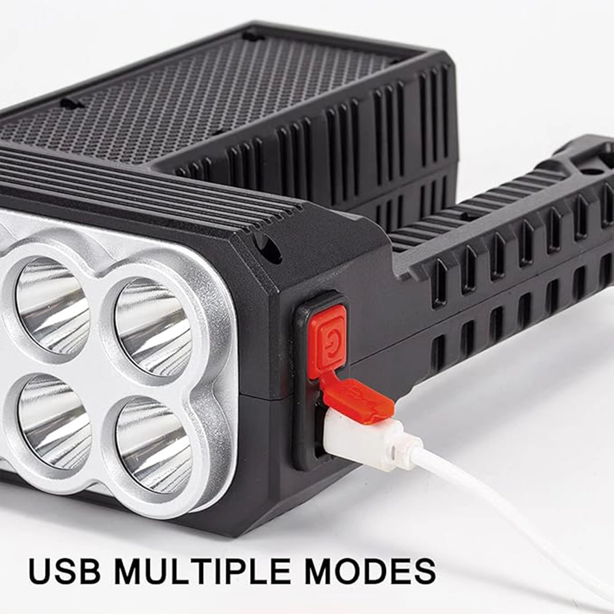 شارژ خورشیدی و USB: از راحتی شارژ دوگانه لذت ببرید. با استفاده از پنل شارژ خورشیدی، انرژی خورشید را ذخیره کنید یا از طریق کابل USB همراه دستگاه آن را شارژ کنید. این چراغ قوه تضمین می‌کند که حتی در مناطق دورافتاده نیز بدون منبع انرژی نمی‌مانید.